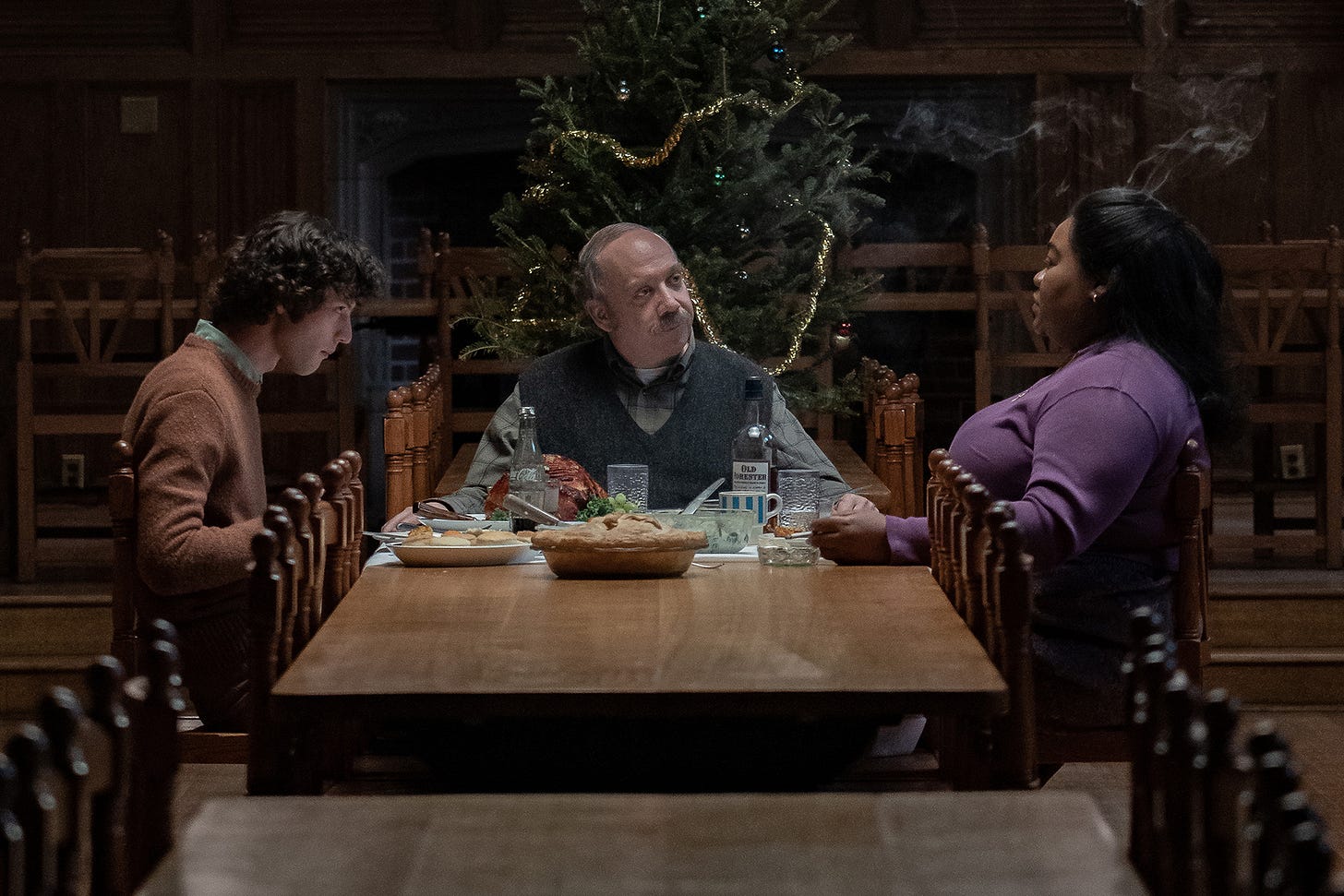 Next is Mary Lamb (Da'Vine Joy Randolph), the school’s cafeteria chief who’s forgone spending the holidays with family after the death of her son in Vietnam. And last is young Angus Tully (Dominic Sessa), a cocksure loner who picks fights in part because his self-loathing makes losing them as much of a desire as his ego covets winning. He was supposed to spend the holiday with his mother and stepfather only to be told last-second (and after already mocking fellow a classmate, Brady Hepner’s Teddy, for having to stay) that he’d been deleted from the itinerary. So, add self-pity to his list of emotional troubles and enjoy the inevitable fireworks.