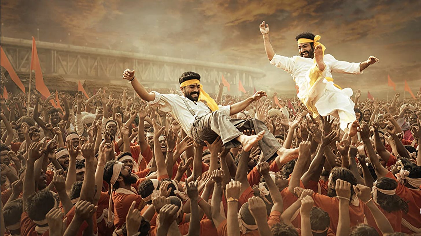 Hardly original in narrative with adversaries accidentally becoming best friends only to realize it too late and have to choose between “brother” and “mission,” it is wild in its orchestration with one climactic fight unfolding fully on piggyback. There’s some big brain insanity in that respect to offset the otherwise over-the-top theatricality of caricatured villains (Ray Stevenson and Alison Doody as the governor and his bloodthirsty wife leave little scenery left after chowing down every time the camera places them in frame) and swooning score. But that’s Tollywood for you. It’s all a heightened state of reality with musical montages, interludes (“Naatu Naatu” made the Oscar Song shortlist), and supernatural-esque sequences imbuing men with God-like powers.