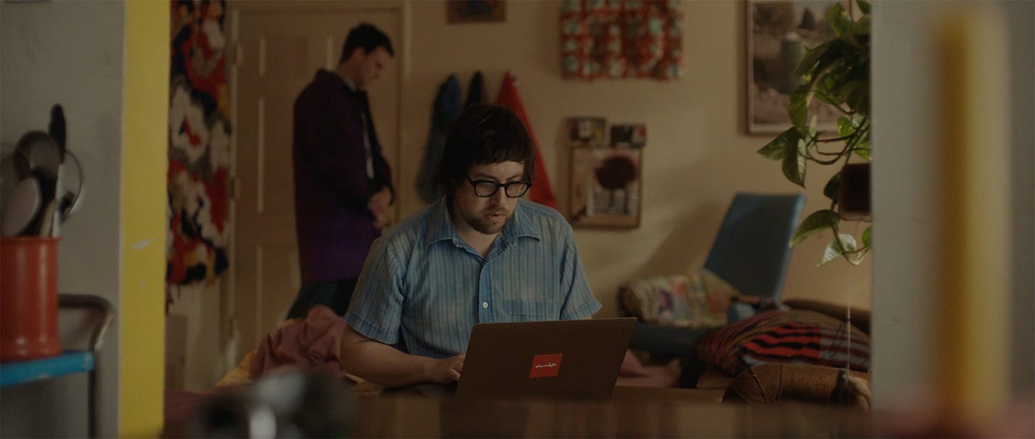 And yet he isn’t perfect. He, like everyone in their office, must still endure the machinations of humanity filling time and space with empty words. Lambert’s film is very deliberate with a glacial pacing that embodies this awkward atmosphere of phoniness to help us understand Fran’s isolation as well as the commonality of just how easy it is to lose years of your life to the grind of careers that promise to set you up for a prize of happiness that may never come. That’s not to say the message is to connect with people you may not like just to survive. Parvesh Cheena’s Garrett is proof of the opposite—connecting superficially with coworkers to get through the daily artificiality and maintain true joy outside its capitalist convention.