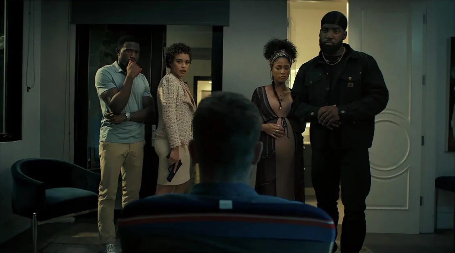 It’s an entertaining if overstuffed ride that pulls no punches. It leans so hard into stereotypes that it’s easy to question some of the choices (especially when turning the tables as far as assumptions towards Brian go) before realizing that flipping everything is necessary to avoid being labeled the irrational person holding the gun. Paranoia and deception therefore rule the day as each party (the trio is eventually joined by James’ brother, Shamier Anderson’s Jamal, and pregnant sister-in-law, Lex Scott Davis’ Candy) seeks to push matters towards a place where they each have an advantage. Mistrust ultimately prevails until escape proves impossible. Because these conversations only seem to ever end worse than they’ve begun since the only person we truly listen to today is ourselves.