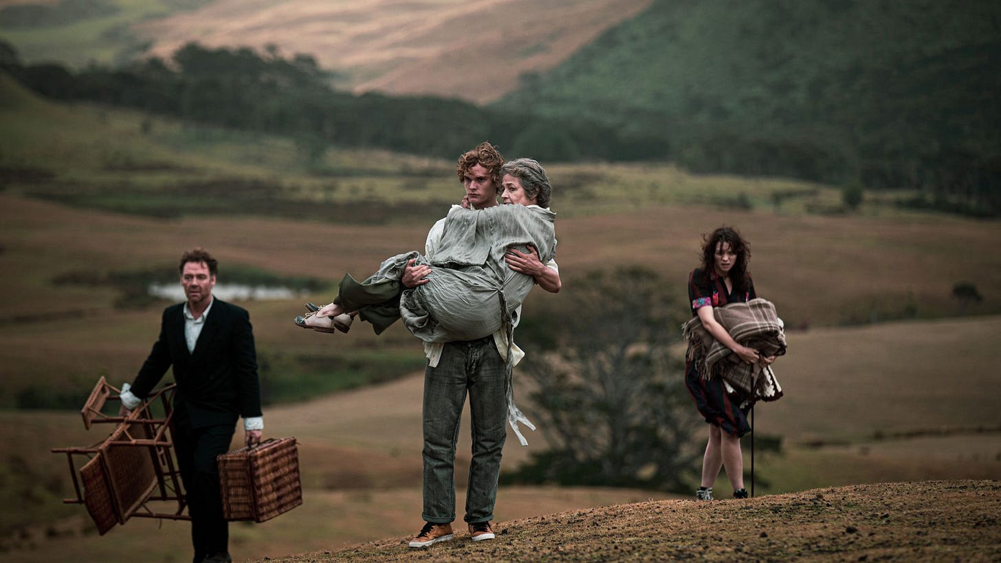 Sam (George Ferrier) is our suicidal teen lead who’s barely hanging on at boarding school when he isn’t drunk. The reasons why will soon be revealed, but for now we simply watch him sulk and prepare for his late mother’s birthday to join her in oblivion. Except an unexpected wrinkle gets thrown into the mix. His British father (Marton Csokas’ Robert) has agreed to let his own mother (Charlotte Rampling’s Ruth) stay with them to convalesce from a bad injury that has kept her stuck in a wheelchair in England. The two don’t talk. Sam has never even met her. It therefore appears to be one big messed up family stuck together to endure each other’s resentments as they continue to build the emotional walls that already separate them even higher. With a lot of gin and a desire to fight, they might shift the tide.