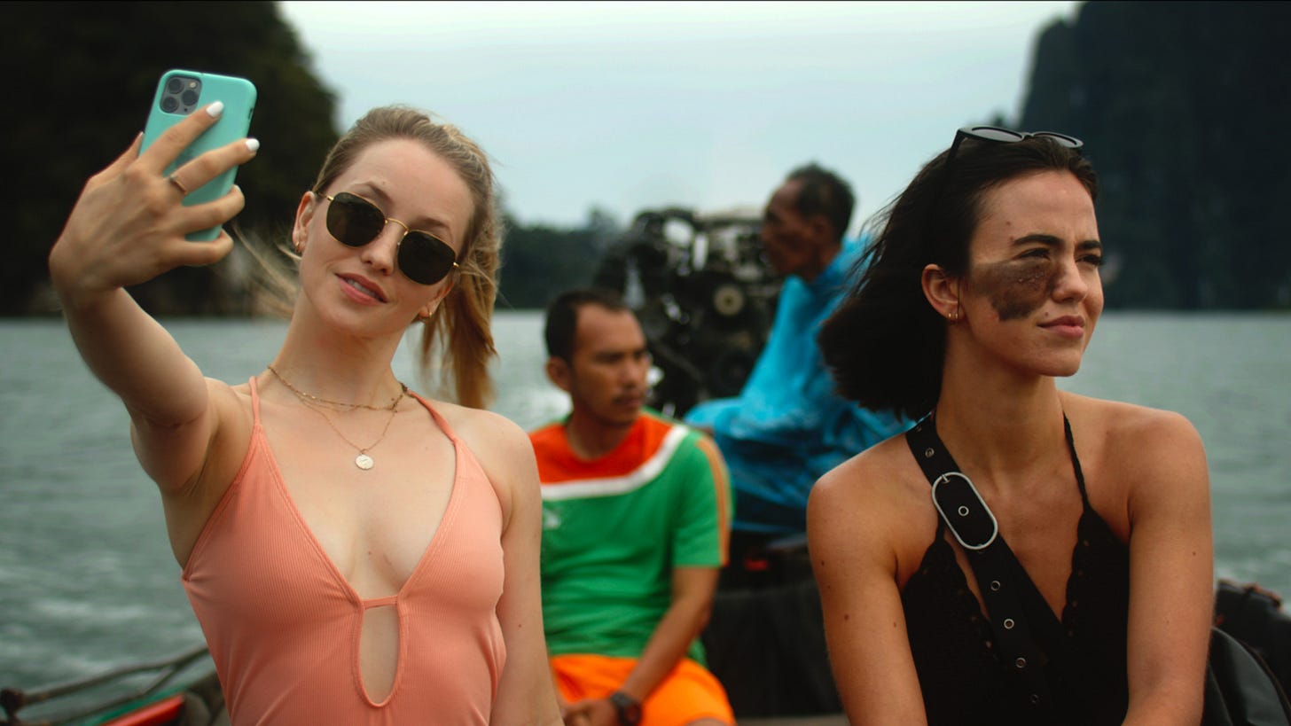 With the opening credits not arriving on-screen until the twenty-five-minute mark, director Kurtis David Harder and co-writer Tesh Guttikonda’s INFLUENCER isn't as straightforward as you may assume. Because despite starting out from Madison’s (Emily Tennant) perspective, it isn’t even her story. She’s instead an unsuspecting guide putting us onto the main narrative—a catalyst who simultaneously acts as the real focal point’s unwitting target and indirect adversary. Madison is a social media shill struggling to have fun in paradise because her boyfriend and quasi-agent Ryan (Rory J Saper) bailed at the eleventh hour. CW (Cassandra Naud) notices this isolation. Feeds off it. CW not only befriends her, she “saves” her. All to inevitably steal her money and leverage her clout for added comfort, knowing the world won’t miss Madison if she disappears. Not if the “brand” soldiers on. That’s all they’ve ever truly cared about anyway.