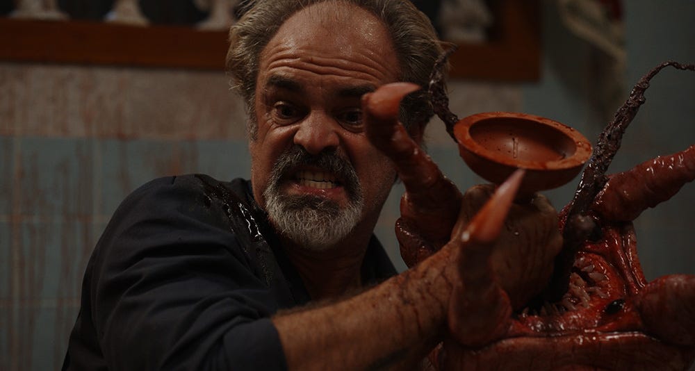 Whatever it was that killed Sonny’s (Daniel Doheny) mother has rendered him incapable of living without a bottle of Bismuth to ease his stomach. He didn’t used to be a germophobe, but now he can’t even eat dinner without first scrubbing a layer of skin off his hands. So, it doesn’t help matters that his father (Steven Ogg’s Don) is a plumber who more or less swims in germs all day. Unless they can use that fact to their advantage. Maybe taking Sonny on Don’s latest job to unplug Mrs. Applebaum’s (Marcia Bennett) toilet can serve as exposure therapy and snap him out of it. If only they knew what was actually hiding inside those pipes.
